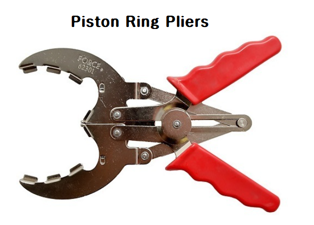 이러한 종류의 플라이어에는 두 가지 주요 형태가 있으며 둘 다 엔진 내부의 피스톤 링을 제거하고 교체하는 데 사용됩니다. 첫 번째 유형은 사람이 쉽게 제거하기 위해 피스톤 링을 펼치는 데 사용할 수 있는 턱에 곡선 팁이 있습니다.